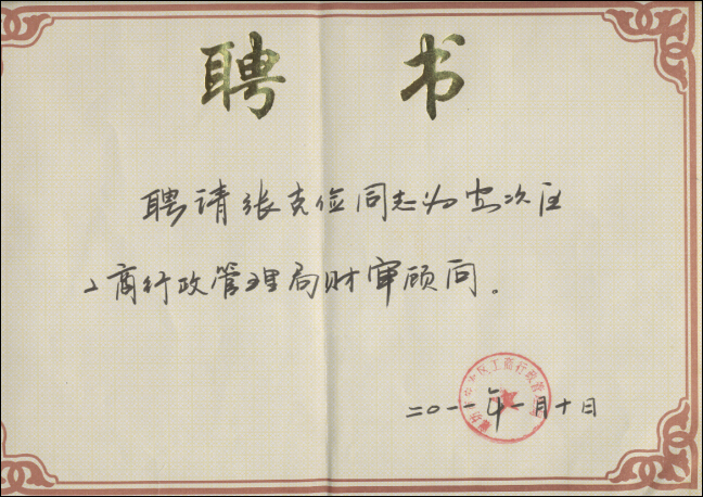 安次區(qū)工商局聘書 張克儉被選舉為中稅協(xié)理事 廊坊市金融辦金融顧問聘書