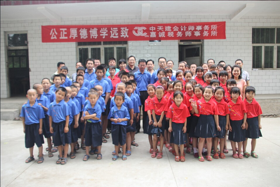 同學(xué)們穿上了嶄新的校服 收到石湖小學(xué)贈送的錦旗
