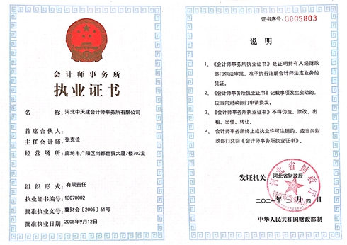 中天建會計師事務所執(zhí)業(yè)證書 -