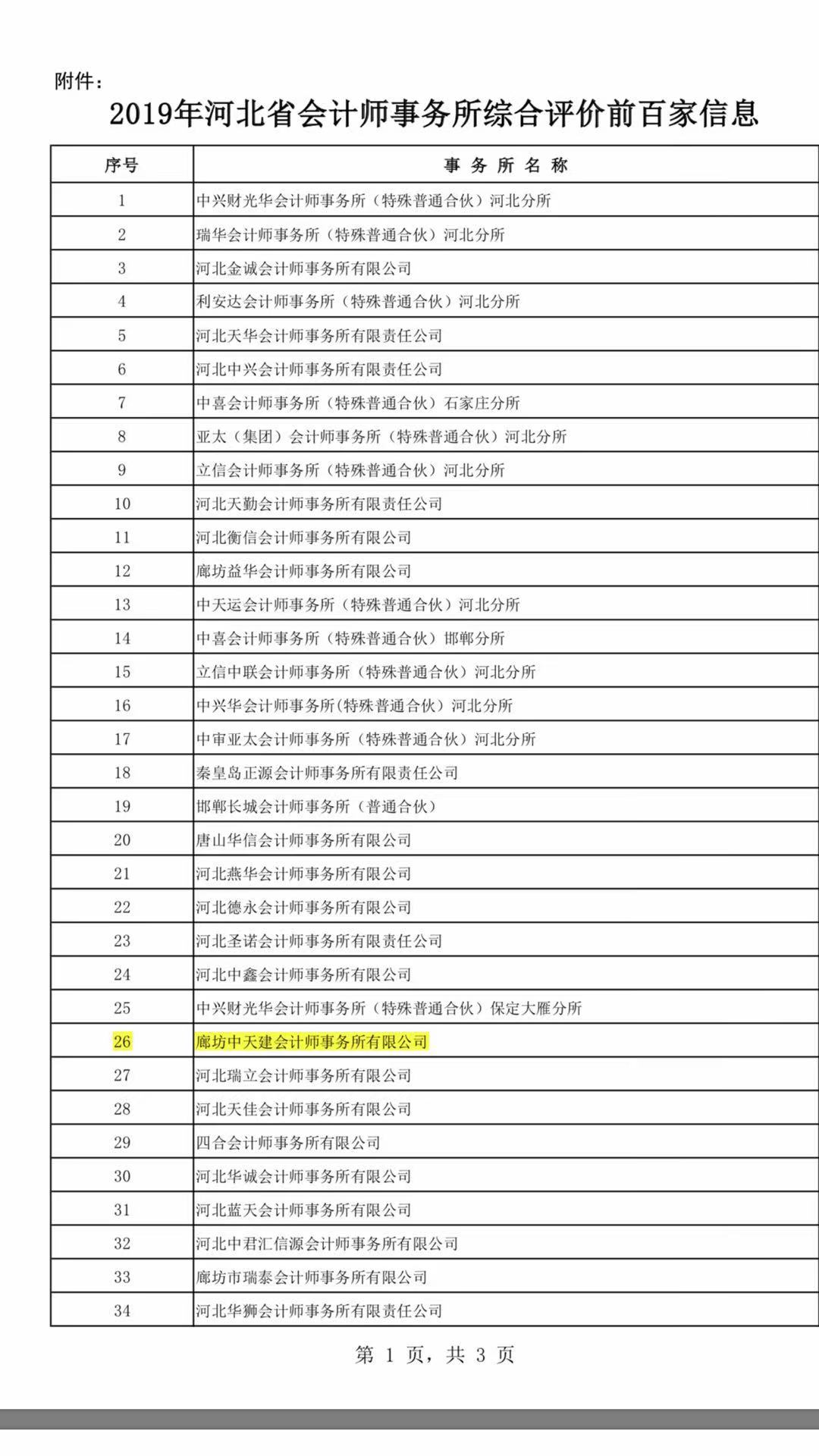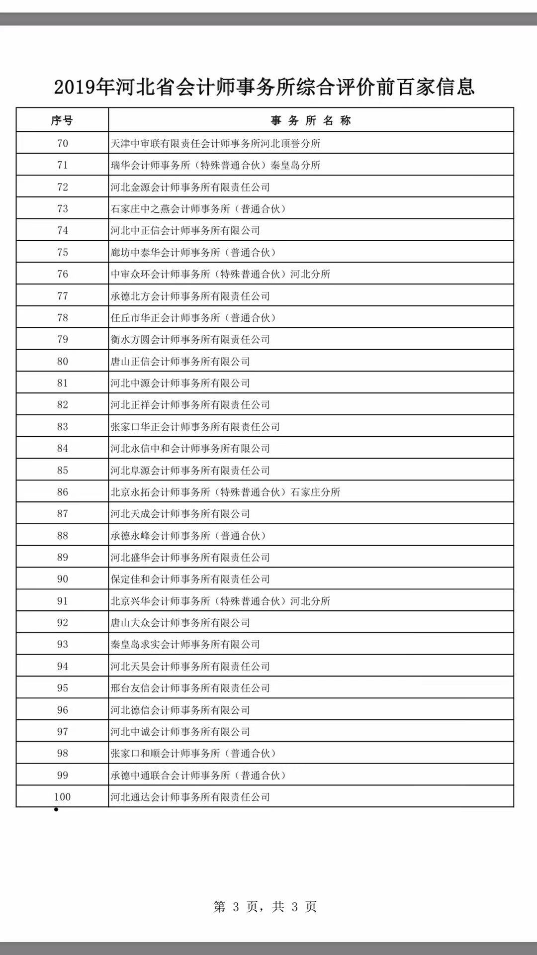 我單位入圍2019年河北省會計師事務(wù)所綜合評價前百家名單