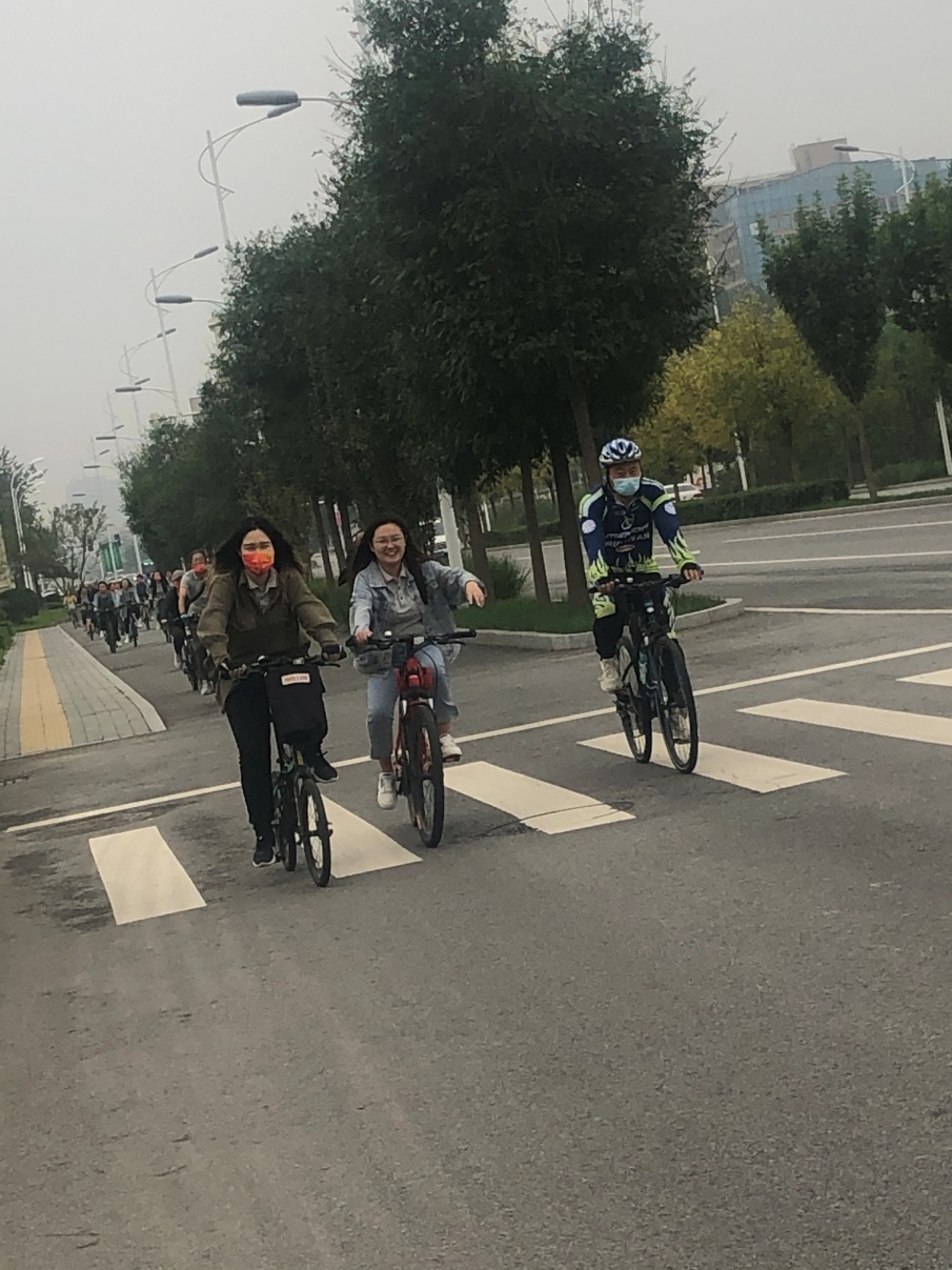 早晨8點整,大家在公司樓下小廣場集合,由全體成員組成的龐大騎行隊伍沿新華路北行→藝術大道西行→西環(huán)路南行→古縣路東行前往我們的第一站隆福寺。