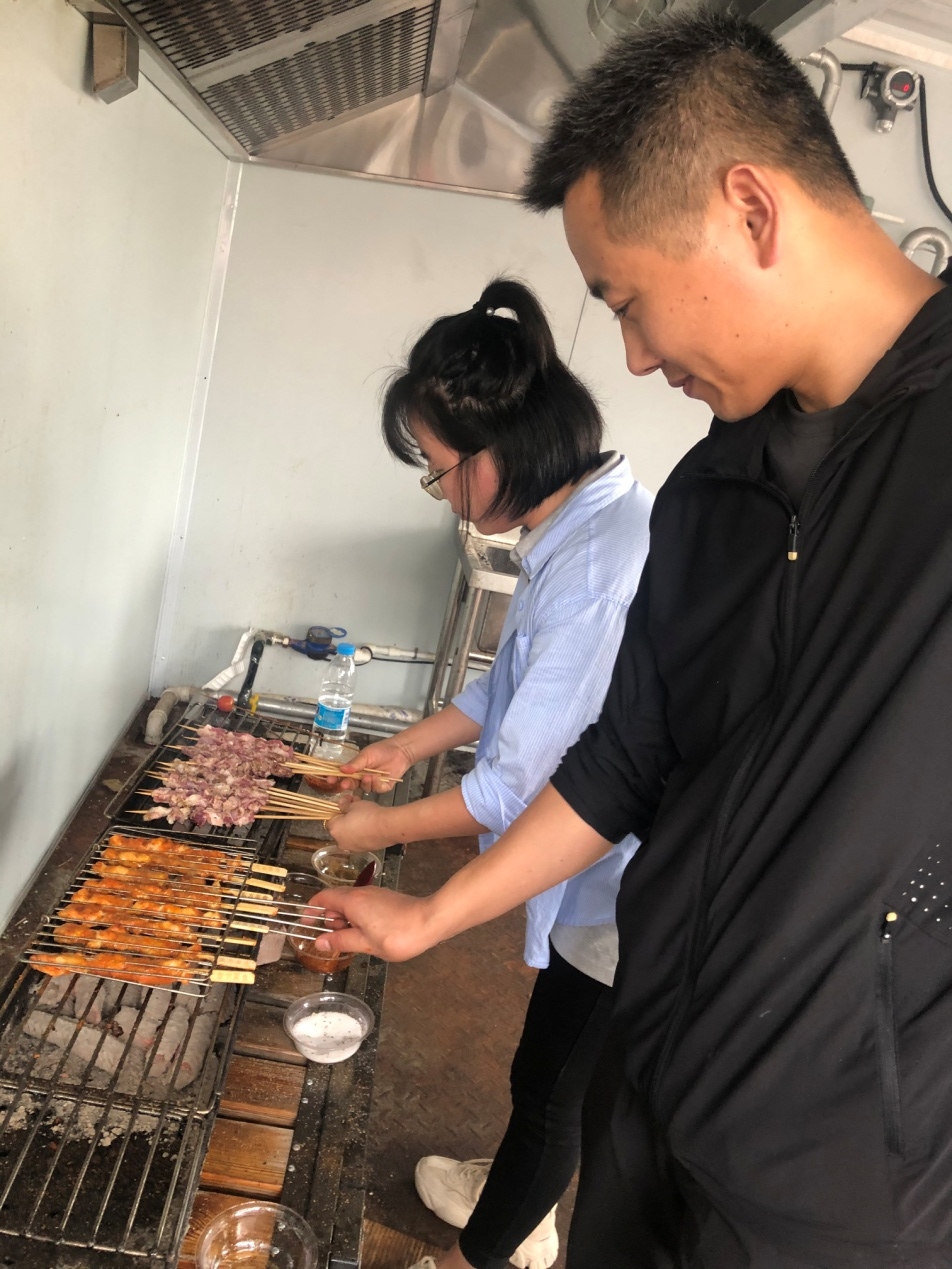 到達御龍河公園大家整齊的停好自行車后,兩個所全體同事開始準備午餐。男同事負責生火、燒炭,為接下來的燒烤大餐做準備,女同事負責擇菜、洗菜、穿串,整個公園都是我們的歡聲笑語。