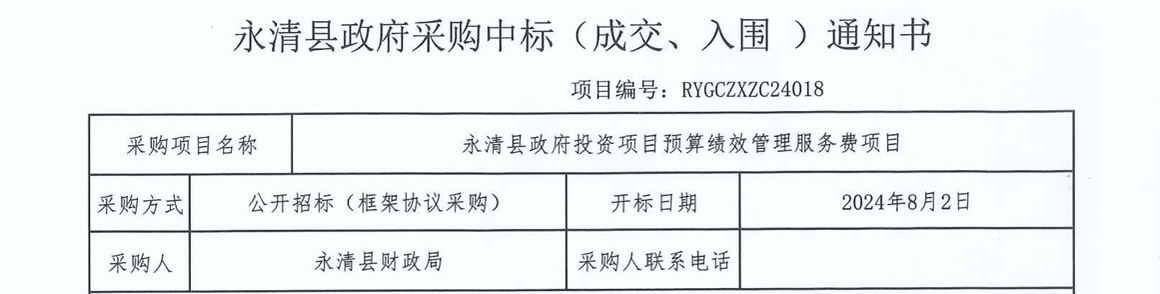 【關(guān)于我們】中標(biāo)永清縣政府投資項(xiàng)目預(yù)算績效管理服務(wù)費(fèi)項(xiàng)目