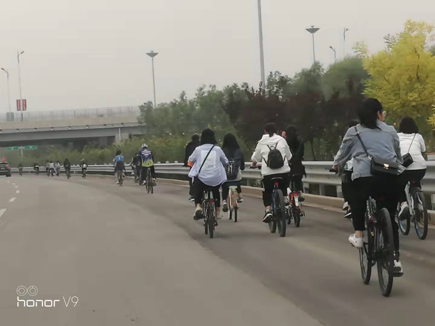 早晨8點整,大家在公司樓下小廣場集合,由全體成員組成的龐大騎行隊伍沿新華路北行→藝術大道西行→西環(huán)路南行→古縣路東行前往我們的第一站隆福寺。