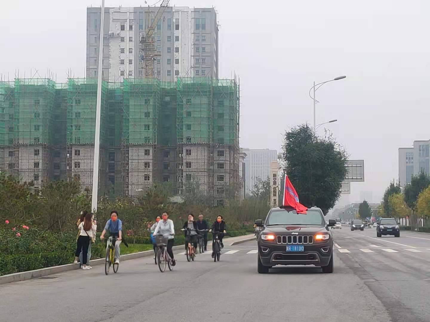 為保障隊員們安全騎行,公司專門派出了后勤保障車,為隊員們提供水、紙巾等物品,為車隊加油助威。隊員們也充分發(fā)揚團結互助,加油鼓勁的精神。一路上大家互幫互助,體力不好的同事也在盡最大的努力堅持不放棄。在大家的共同堅持與努力下,到達了本次騎行目的地。