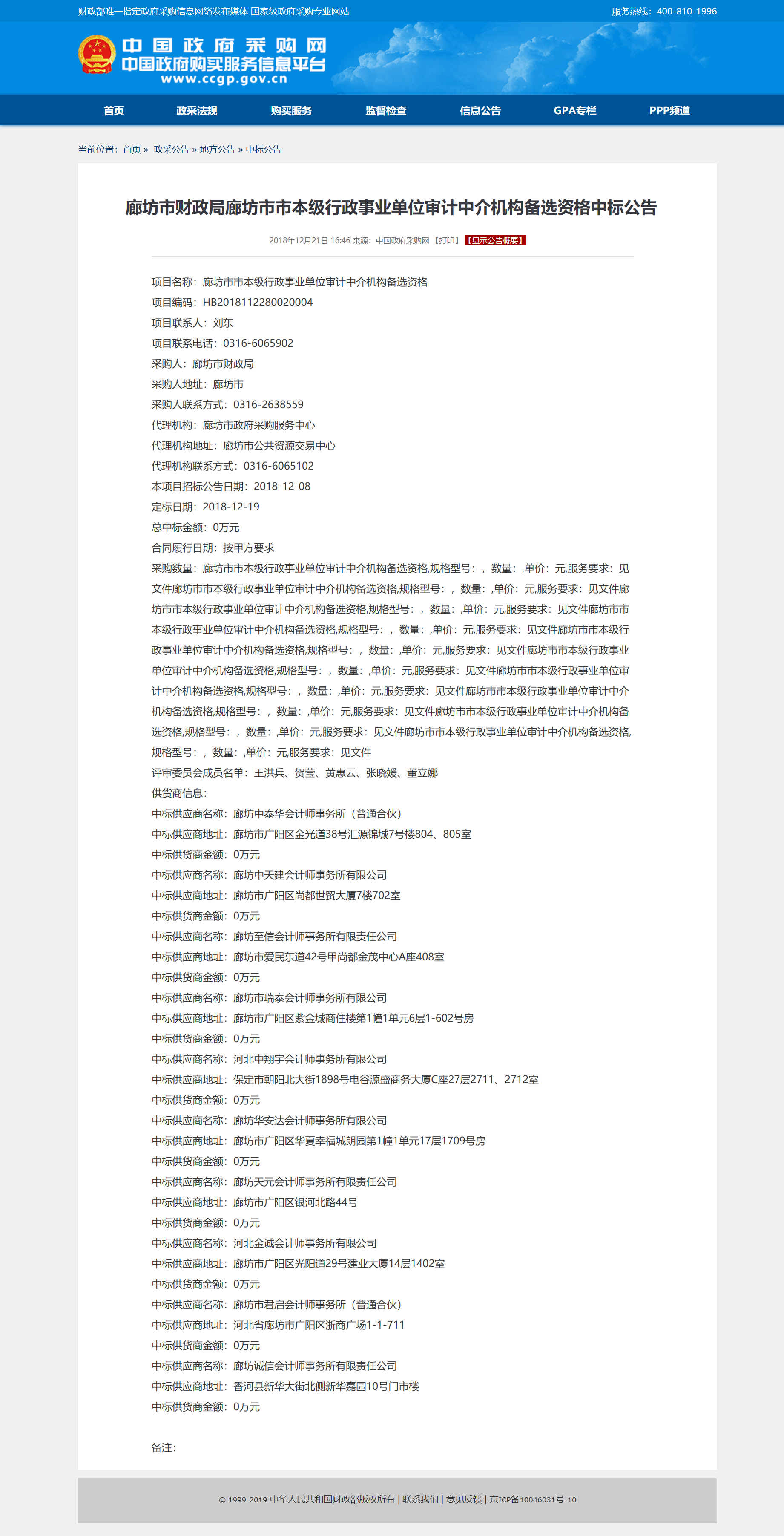 公司入圍廊坊市財(cái)政局行政事業(yè)單位審計(jì)中介機(jī)構(gòu)備選庫